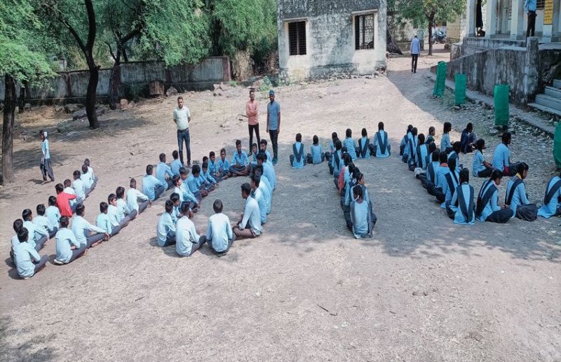 राजस्थान चुनाव : बच्चों ने वोट का सिंबल बनाकर मतदान के लिए किया प्रेरित