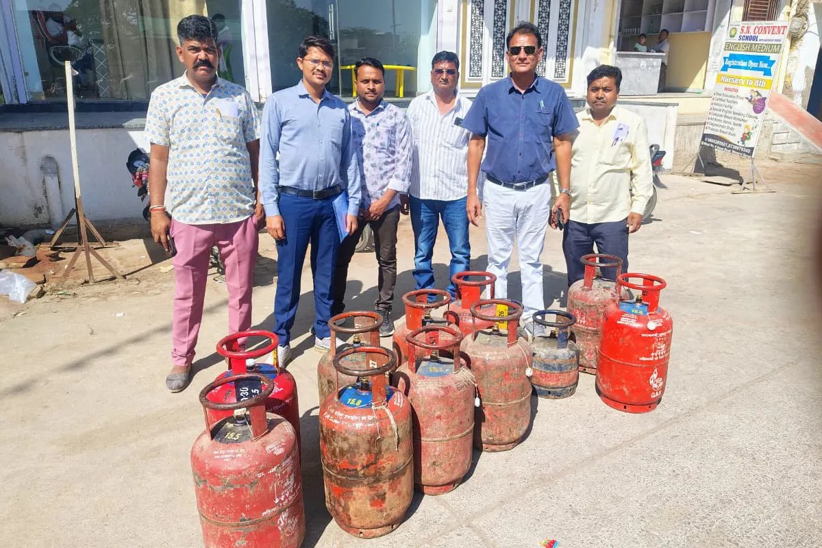 जब्त सिलेंडर के साथ टीम। फोटो- पत्रिका