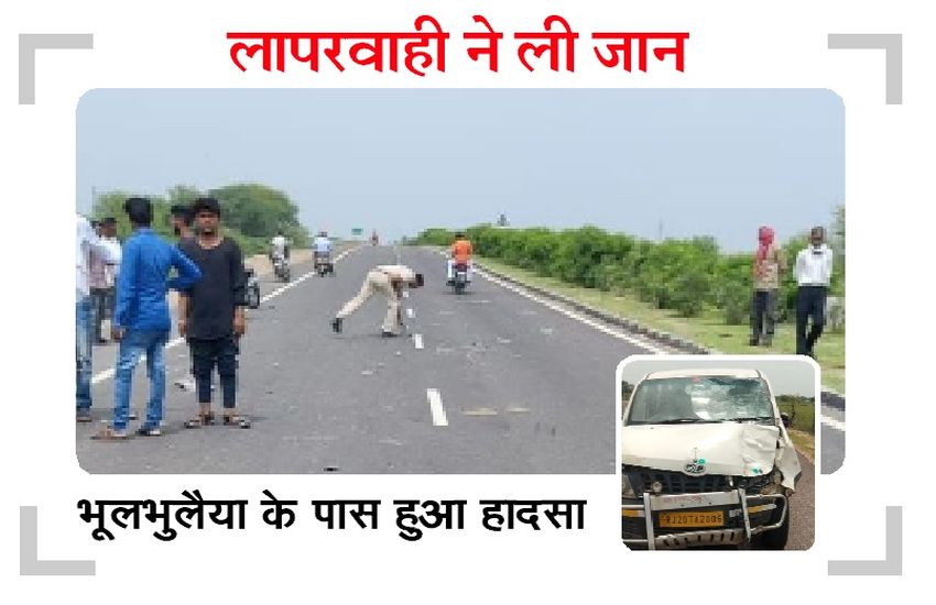 बारां. अटरू रोड भूलभूलैया चौराहा के समीप बुधवार दोपहर कार की भिड़न्त से बाइक सवार दो जनों की मृत्यु हो गई। बाइक सवार मृतक महिला-पुरूष छबड़ा थाना क्षेत्र के रीछड़ा गांव से बारां शहर में आ रहे थे, लेकिन शहर में प्रवेश से पहले ही गंभीर हादसा हो गया। बाइक सवार डिवाइडर के कट से निकलकर अचानक मुख्य लाइन पर आ गया। इससे पीछे से आ रही तेज रफ्तार कार ने उसको टक्कर मार दी। पुलिस ने पोस्टमार्टम के बाद महिला का शव परिजनों को सौंप दिया तथा पुरुष का पोस्टमार्टम गुरुवार को होगा।