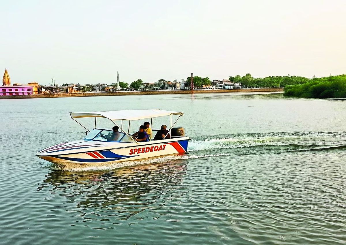 तालाब में स्पीडबोट, विद्युतसज्जा होगी