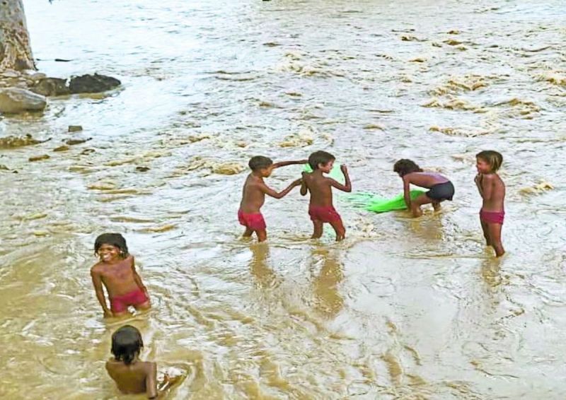 क्षेत्र के बीलखेड़ा डांग गांव से बहने वाली नदी में बारिश के वाद नदी में पानी की आवक अधिक हो गई। जिसमें सहरिया समाज के छोटे-छोटे बच्चे मछलियां पकड़ते नजर आए।