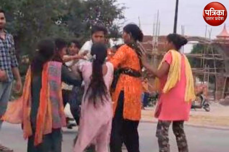 युवक को पीटतीं महिलाएं (फोटो सोर्स: पत्रिका)