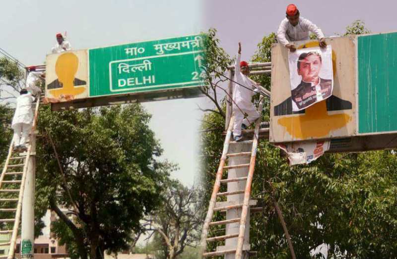 बरेली। सपा सरकार में बनी सड़क पर लगे साइन बोर्ड पर प्रशासन ने सपा के राष्ट्रीय अध्यक्ष अखिलेश यादव की तस्वीर पर पीला रंग पोत दिया था जिसका समाजवादी पार्टी ने विरोध किया और शनिवार को सपा के फ्रंटल संगठनों ने वहां पर अखिलेश यादव की नई तस्वीर लगा दी। समाजवादी पार्टी के जिलाध्यक्ष शुभलेश यादव के निर्देश पर समाजवादी पार्टी के जिला सचिव प्रमोद यादव व जिला प्रवक्ता हैदर अली की अगुवाई में पार्टी के फ्रंटल संगठनों ने डेलापीर चौराहे पर प्रदेश सरकार के विरूद्ध सड़क पर उतर कर प्रदर्शन भी किया।