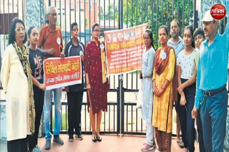 अक्षर विहार पार्क में ताला, जनता बाहर (फोटो सोर्स : पत्रिका)