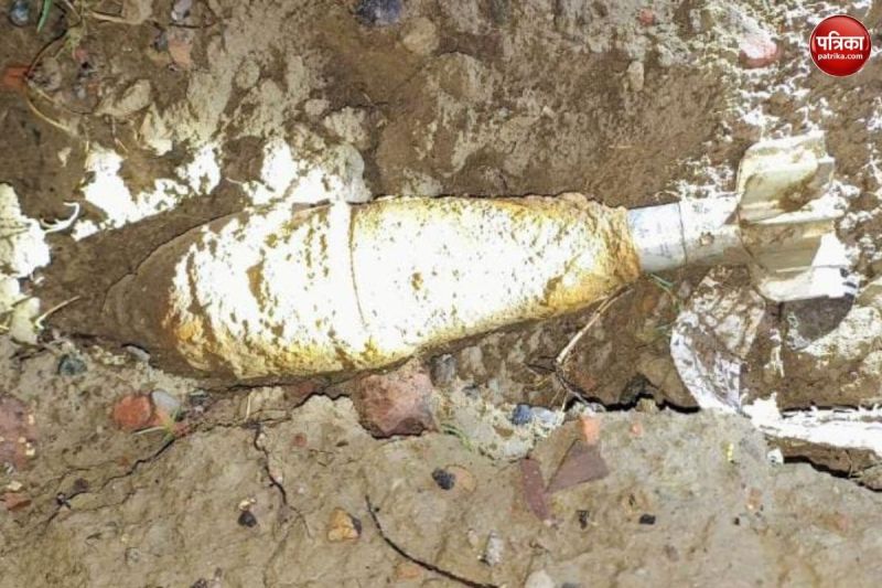 रेलवे ट्रैक के पास मिला पुराना मोर्टार बम फोटो सोर्स: पत्रिका