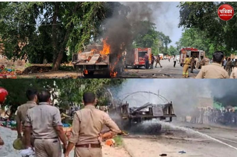 ट्रैक्टर से कुचलकर कांवड़िये की मौत, गुस्साए श्रद्धालुओं ने ट्रॉली में लगाई आग (फोटो सोर्स: पत्रिका)