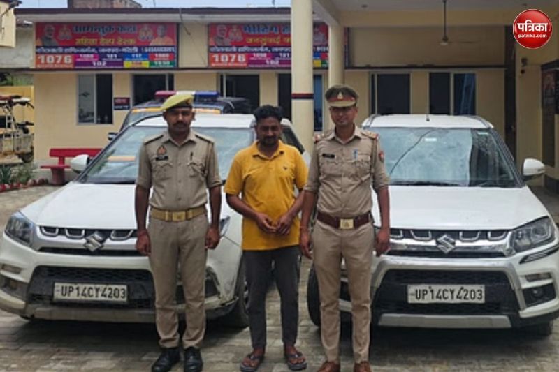 पुलिस की गिरफ्त में आरोपी व दोनों गाड़ियां जब्त (फोटो सोर्स: पत्रिका)