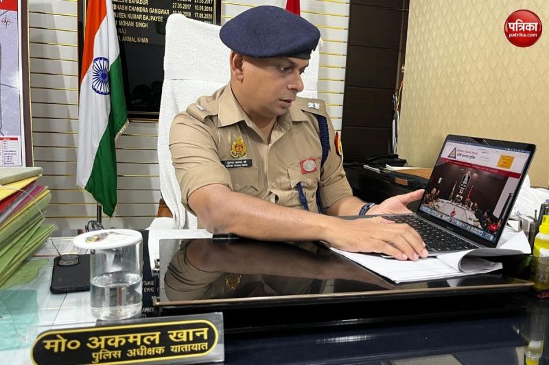 वेबसाइड के बारे में जानकारी देते एसपी ट्रैफिक (फोटो सोर्स: पत्रिका)