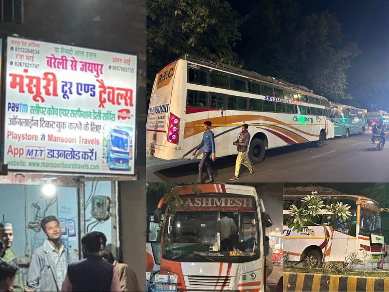 शनिवार शाम को बरेली से जयपुर जाने के लिए 14 गाड़ियां भरी गई। छह गाड़ियां बरेली कॉलेज गेट और मानसिक चिकित्सालय के पास से, बारादरी थाने के पास एक गाड़ी, सेटेलाइट और पीलीभीत बाईपास के पास से बसें भरी गई। यह बसें डबर डेकर है। डबर डेकर बसों में ठूस ठूंसकर सवारी भरी जाती है। अवैध टिकट काउंटर खोल रखे है। कभी भी कोई बड़ा हादसा हो सकता है।