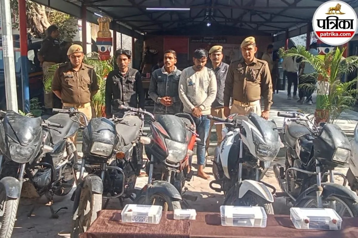 सीओ सेकेंड सोनाली मिश्रा ने खुलासा करते हुए बताया कि 30 नवंबर को गश्त के दौरान थाना किला पुलिस टीम ने दौली रघुवर की तरफ जाने वाली सड़क पर गंगा मंदिर के पास तीन संदिग्ध युवकों को रोका। पूछताछ में वे उलझने लगे, जिसके बाद तलाशी में चोरी की मोटरसाइकिलें और अवैध हथियार पकड़े गए। पुलिस ने संगम उर्फ सिंघम गुप्ता, संजीव सिंह, सचिन सिंह ठाकुर को गिरफ्तार किया है। इन तीनों के घर और ठिकानों से पुलिस ने 25 चोरी की मोटरसाइकिलें, स्कूटी और अवैध हथियार बरामद किए। कई वाहनों के नंबर बदलकर दूसरी प्लेट लगाई गई थी। कई गाड़ियों के इंजन और चेसिस नंबर मिटाए हुए थे।