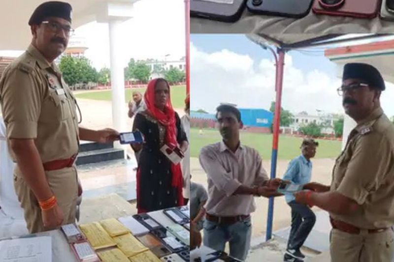 लोगों को उनके मोबाइल फोन देते एसपी उत्तरी (फोटो सोर्स: पत्रिका)