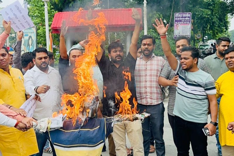 आक्रोशित युवा मोर्चा के कार्यकर्ताओं ने भारतीय जनता पार्टी कार्यालय से विरोध जुलूस निकालते हुए चौकी चौराहे पर शनिवार को पुतला दहन किया। इस दौरान युवा मोर्चा के क्षेत्रीय महामंत्री रुद्रालक्ष्मीकांत अवस्थी , जिलाध्यक्ष मुकेश राजपूत, आंवला जिला अध्यक्ष राजू उपाध्याय, अजय अरोड़ा ,सूरज राठौड़ ,अनिल संजीव शर्मा, अमन पांडे,, नीरज पटेल,ऋषभ शर्मा, शिवम गुप्ता, अमित उपाध्याय, शिवम आर्य,आशुतोष,प्रदीप, पृथ्वीराज,खेमपाल, तेज विक्रम, जतिन,प्रांशु, शांति स्वरूप व अन्य पदाधिकारी और कार्यकर्ता उपस्थित रहे।
