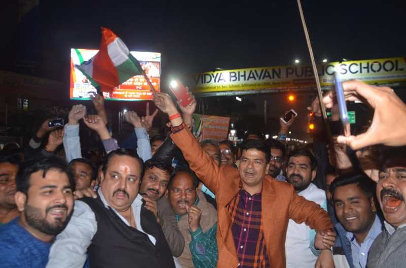 बरेली। विंग कमांडर अभिनंदन के देश लौटने की ख़ुशी में शहर में जमकर जश्न मनाया गया। शहर के सभी प्रमुख चौराहों पर तमाम संगठनों ने आतिशबाजी कर जश्न मनाया। पटेल चौक पर मेयर उमेश गौतम भी जश्न में शामिल हुए। यहाँ पर नगर निगम की स्क्रीन पर दिन भर लाइव टेलीकास्ट किया लोग टकटकी लगाए बड़ी सी स्क्रीन की तरफ देखते रहे। अभिनंदन जैसे ही भारत की सीमा में दाखिल हुए वैसे ही भारत माता की जय और हिंदुस्तान जिंदाबाद के नारे गूंजने लगे।