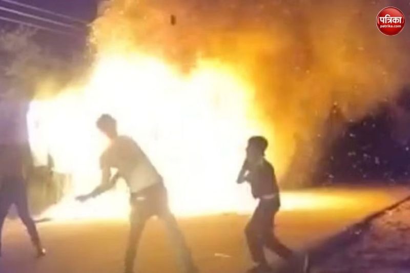 डीसीएम में आग लगाते गुस्साए कांवड़िए (फोटो सोर्स: पत्रिका)