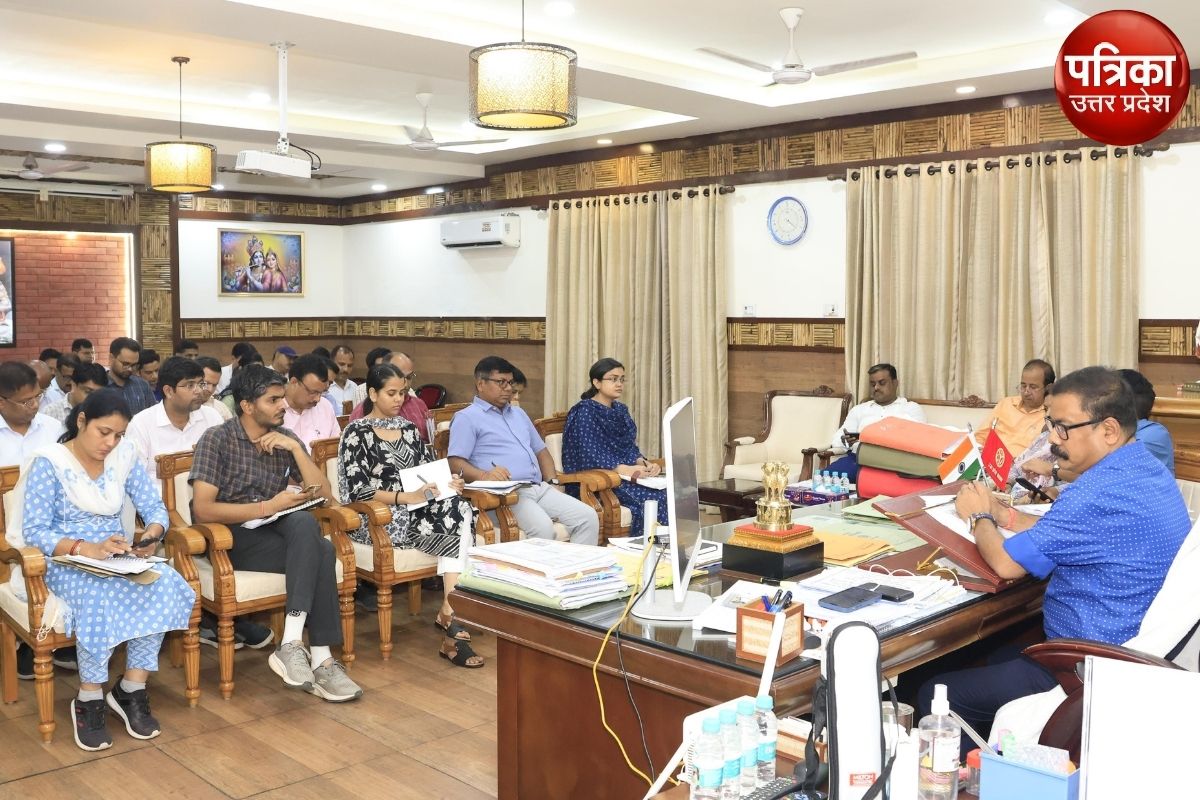 अधिकारियों के साथ बैठक करते डीएम (फोटो सोर्स: पत्रिका)