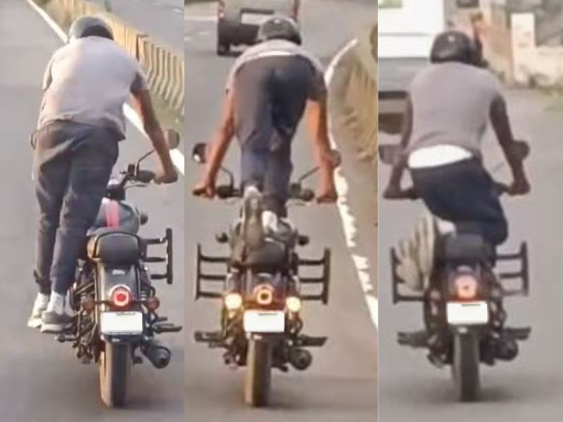 सोशल मीडिया पर आए दिन बाइक पर स्टंट करते लोगों के वीडियो वायरल हो रहे हैं। ऐसा ही एक वीडियो बरेली से सामने आया है। जिसमें एक युवक बुलेट पर स्टंट करते दिखाई दे रहा है। स्टंट करते हुए बुलेट सवार कभी बुलेट पर बैठ जाता है तो कभी खड़ा हो जाता है। जान जोखिम में डालकर बुलेट सवार चलते वाहनों के आगे स्टंट करते हुए बुलेट दौड़ा रहा है। उल्टे-सीधे कट मार रहा है। बस में सवार किसी व्यक्ति ने वीडियो बनाकर सोशल मीडिया पर वायरल कर दिया। वायरल वीडियो बरेली-बदायूं हाईवे पर रामगंगा के पास का बताया जा रहा है। ढाई मिनट के इस वीडियो में वीडियो बनाने वाला कह रहा है कि ऐसे युवक स्टंट के चक्कर न सिर्फ अपनी जान जोखिम में डालते हैं, बल्कि दूसरों की जान की परवाह भी नहीं करते है। वीडियो के अंत में स्टंट कर रहा बुलेट सवार रामगंगा पुल के पास पहुंच जाता है। वीडियो वायरल होने के बाद ट्रैफिक पुलिस ने संज्ञान लिया है। पुलिस ने वीडियो के आधार पर जांच कराने की बात कही है।