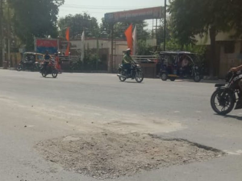 चौपला पुल के नीचे 600 मीटर लंबी सड़क टूटी, उड़ रही धूल