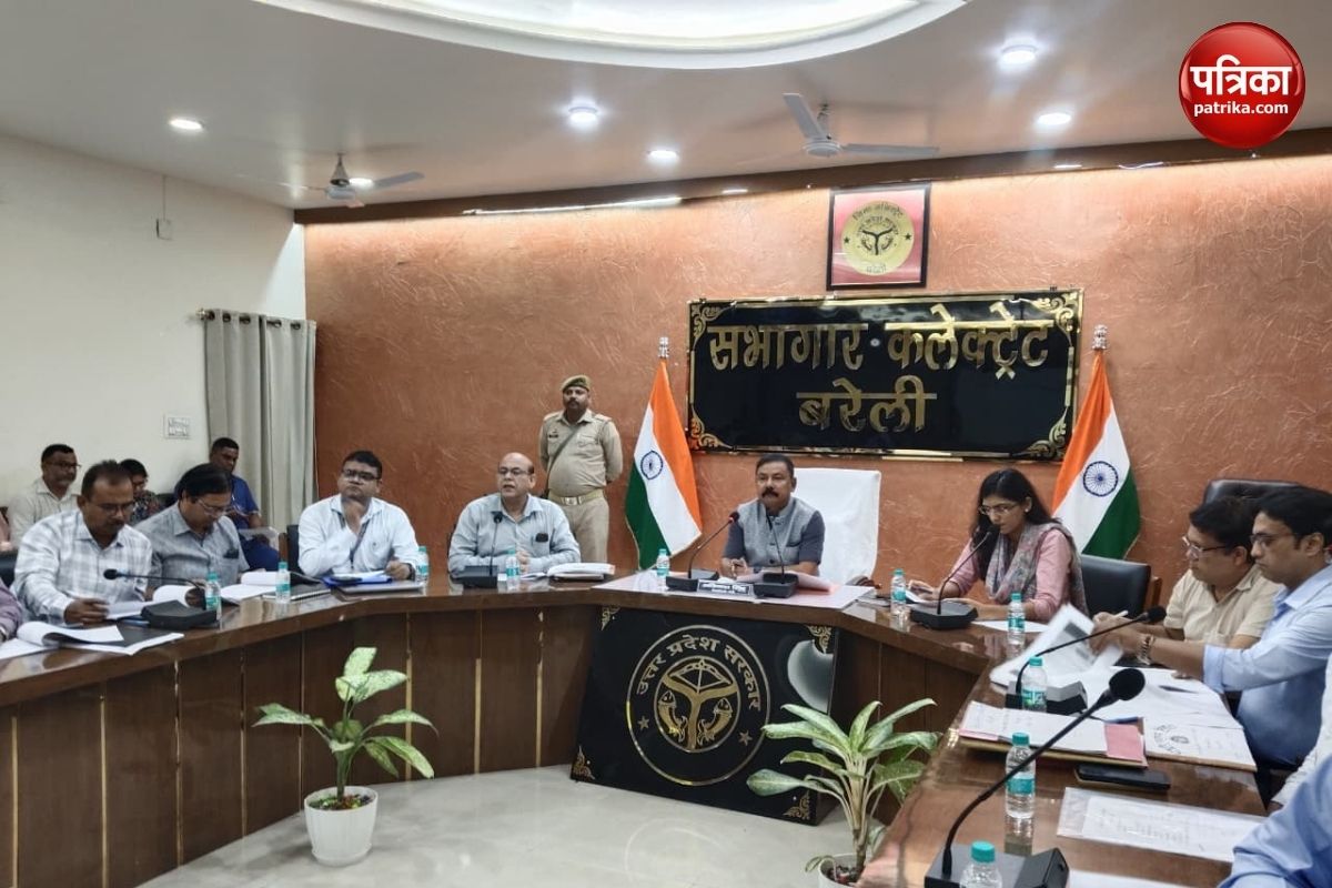 विभागीय अफसरों के साथ बैठक करते डीएम और सीडीओ (फोटो सोर्स: पत्रिका)