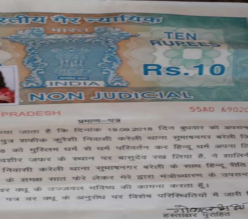 सुभाषनगर के करेली गांव निवासी मोहम्मद शफीक कुरैशी अस्सी साल के हैं और उनका बेटा बशीर जाफर अरुणाचल प्रदेश में आईटीबीपी में तैनात है। शफीक कुरैशी के मुताबिक एक दिन सुबह वो दूध लेने अपने घर से बाहर निकले तो उनके घर की दीवार पर एक हलफनामा चिपका हुआ था इसी तरह के हफनामे पूरे गाँव में चिपकाए गए थे। हलफनामे में उनके बेटे के धर्म परिवर्तन करने की बात लिखी हुई थी। शफीक ने बेटे के धर्म परिवर्तन की सच्चाई पता करने के लिए फोन मिलाया तो उनके बेटे ने ऐसा कुछ भी होने से इन्कार किया। उनके बेटे के वाट्सअप पर भी ये हलफनामा भेजा गया था। शफीक का कहना है कि उन्हें बदनाम करने व माहौल खराब करने के लिए ये साजिश रची गई है।