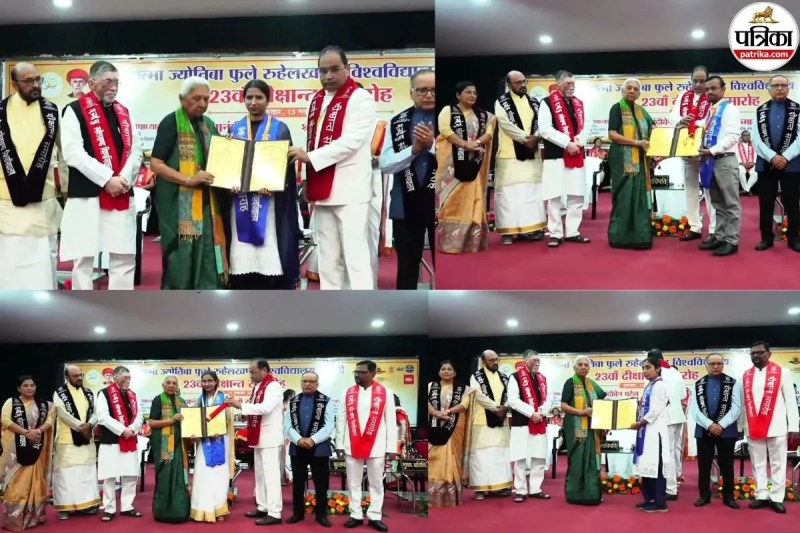 बरेली। महात्मा ज्योतिबा फुले रुहेलखंड विश्वविद्यालय का 23वां दीक्षांत समारोह गुरुवार को पूरे शान-ओ-शौकत के साथ मनाया गया। अटल सभागार में आयोजित इस भव्य समारोह में मंच पर एक साथ दो राज्यपाल मौजूद रहे। उत्तर प्रदेश की राज्यपाल और विश्वविद्यालय की कुलाधिपति आनंदीबेन पटेल मुख्य अतिथि के रूप में शामिल हुईं, जबकि झारखंड के राज्यपाल संतोष गंगवार विशेष अतिथि के रूप में मंच पर मौजूद रहे।