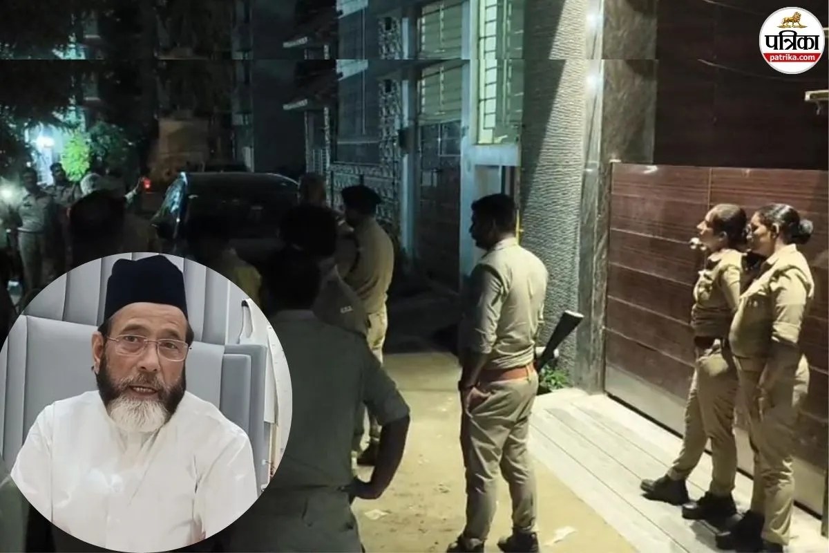 मौलाना तौकीर और फाइका एंक्लेव में मौजूद पुलिस (फोटो सोर्स: पत्रिका)