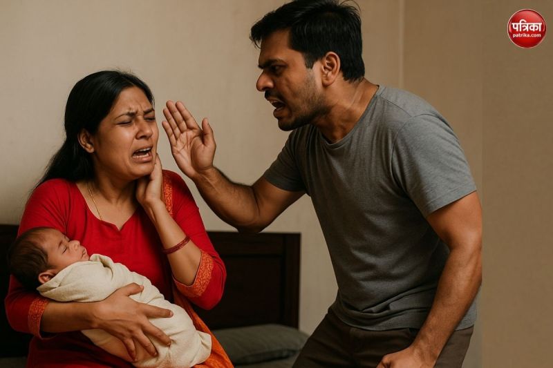 बेटी पैदा होने से गुस्साए पति ने पत्नी को पीटा (फोटो सोर्स: एआई)