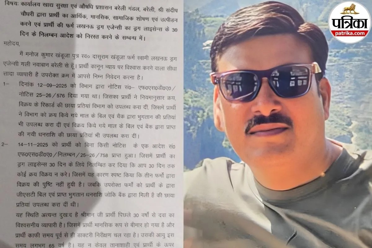 मनोज कुमार खंडूजा ने बताया कि 12 सितंबर को उन्हें नोटिस देकर क्रय-विक्रय के बिल, बैंक भुगतान की प्रतियां, जीएसटी रिकॉर्ड जमा करने को कहा गया था। उन्होंने ने सब कुछ नियम अनुसार जमा किया। इसके बावजूद 14 नवंबर को बिना किसी दूसरी सुनवाई के निलंबन आदेश थमा दिया गया। ड्रग विभाग ने दावा किया है कि तीन फर्मों ने बिक्री की पुष्टि नहीं की। जबकि खंडूजा ने उन फर्मों के भुगतान, बैंक एंट्री और बिल सब जमा किए थे। जब दवा कारोबारी ने सभी सबूत जमा किये थे तो व्यक्तिगत कारणों से या किसी इच्छा के पूरे न होने पर पुष्टि न होने का बहाना क्यों बनाया गया।