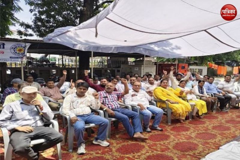 धरने पर बैठे जूनियर इंजीनियर (फोटो सोर्स: पत्रिका)