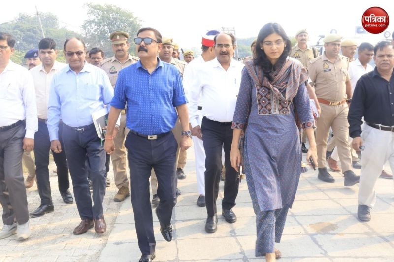 लीलौर झील का निरीक्षण करते डीएम और सीडीओ (फोटो सोर्स: पत्रिका)