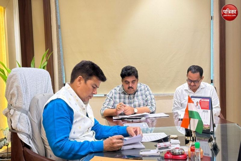 निगम अफसरों के साथ बैठक करते मेयर उमेश गौतम (फोटो सोर्स: पत्रिका)