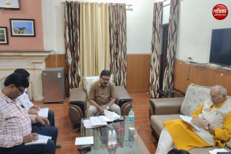 अफसरों के साथ बैठक करते मंत्री धर्मपाल सिंह (फोटो सोर्स: पत्रिका)