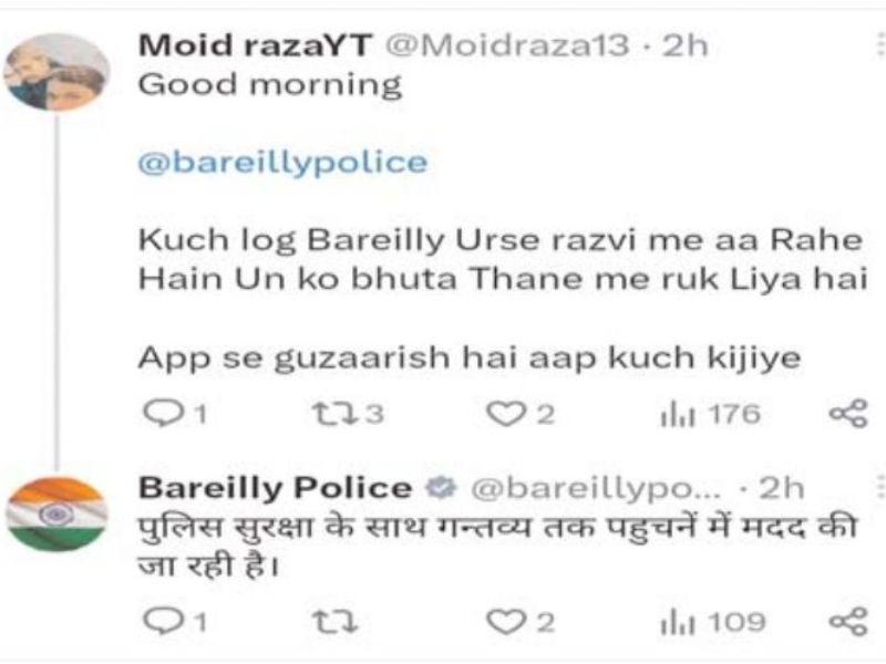 सुबह से ही अकीदतमंदों का दरगाह आला हजरत में उमड़ना शुरू हो गया। हजारों की संख्या में लोग उर्स में शामिल होने के लिए इस्लामिया ग्राउंड पहुंच गए थे। इस दौरान भुता से भी जायरीन बरेली आ रहे थे। एक युवक ने बरेली पुलिस को एक्स (ट्वीटर) पर एक ट्वीट किया। इसमें युवक ने लिखा कुछ लोग बरेली उर्स-ए-रजवी में आ रहे हैं। उनको भुता थाने में रोक लिया है। आप से गुजारिश है कि आप कुछ कीजिए। ट्वीट होने के बाद इसकी चर्चा होने लगी। दरगाह से भी लोगों ने इसकी जानकारी करना शुरू कर दी।