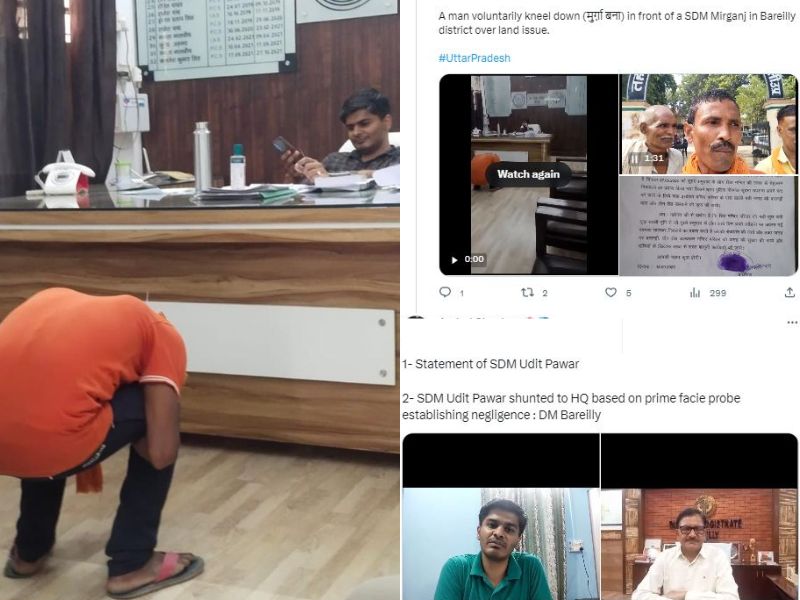 मंडनपुर गांव के लोग एसडीएम मीरगंज उदित पवार से शुक्रवार को शिकायत करने गए थे। उनका कहना था कि शिव मंदिर के महंत भूपराम दास बाबा और सेवादार पप्पू लोधी ने एसडीएम को बताया कि खाली जमीन की बाउंड्री और टिनशेड डलवा दीजिए। दूसरे समुदाय के लोग अपने त्योहार पर मंदिर के पास खाली जमीन से ढोल बजाते हुए निकलते हैं। इससे परेशानी होती है। ग्रामीणों ने खाली जमीन श्मशान के रूप में दर्ज होने के राजस्व रिकॉर्ड भी दिखाए। आरोप है कि इसको लेकर एसडीएम भड़क गए। उन्होंने शिकायत का निस्तारण करने के बजाय मंदिर के सेवादार पप्पू लोधी को अपने ही चेंबर में मुर्गा बना दिया था। इसका वीडियो सोशल मीडिया पर वायरल हुआ। मामला शासन तक पहुंचा। इसके बाद हड़कंप मच गया। तत्काल डीएम ने एसडीएम मीरगंज को हटा दिया। इस पूरे मामले की जांच एडीएम प्रशासन कर रहे हैं।