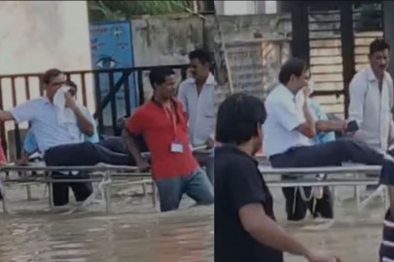 शाहजहांपुर के राजकीय मेडिकल कॉलेज का ये मामला है। पिछले दो दिनों से बाढ़ का पानी मेडिकल कॉलेज में भर गया है। अब ऐसे में मेडिकल कॉलेज में बाहर से आना जाना कैसे करें तो इसके लिए प्रिंसिपल ने ये तरीका निकाला। वीडियो में मेडिकल कॉलेज से बाहर आते प्रिंसिपल दिख रहे हैं। खुद के कपड़े पानी में न भीग जाएं तो चार कर्मचारियों को पानी में उतार कर खुद स्ट्रेचर बैठ गए। इस तरह से प्रिंसिपल पानी से बचते हुए बाहर तो आ गए, लेकिन किसी ने उनका वीडियो बना लिया और सोशल मीडिया पर डाल दिया।