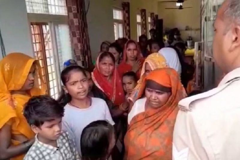 मौके पर मौजूद महिलाएं और पुलिस (फोटो सोर्स: पत्रिका)