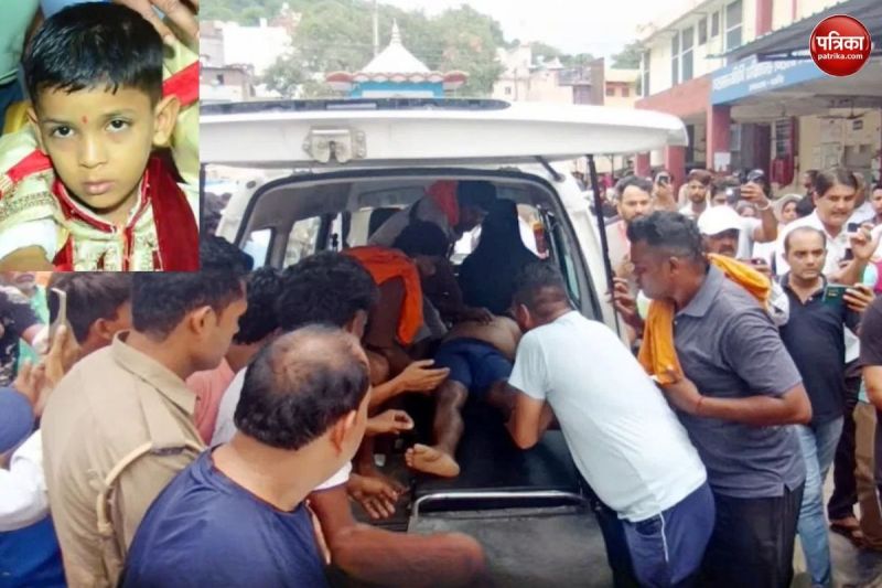 मृतक आरुष का फाइल फोटो और घायलों को अस्पताल भेजती टीम (फोटो सोर्स: पत्रिका)