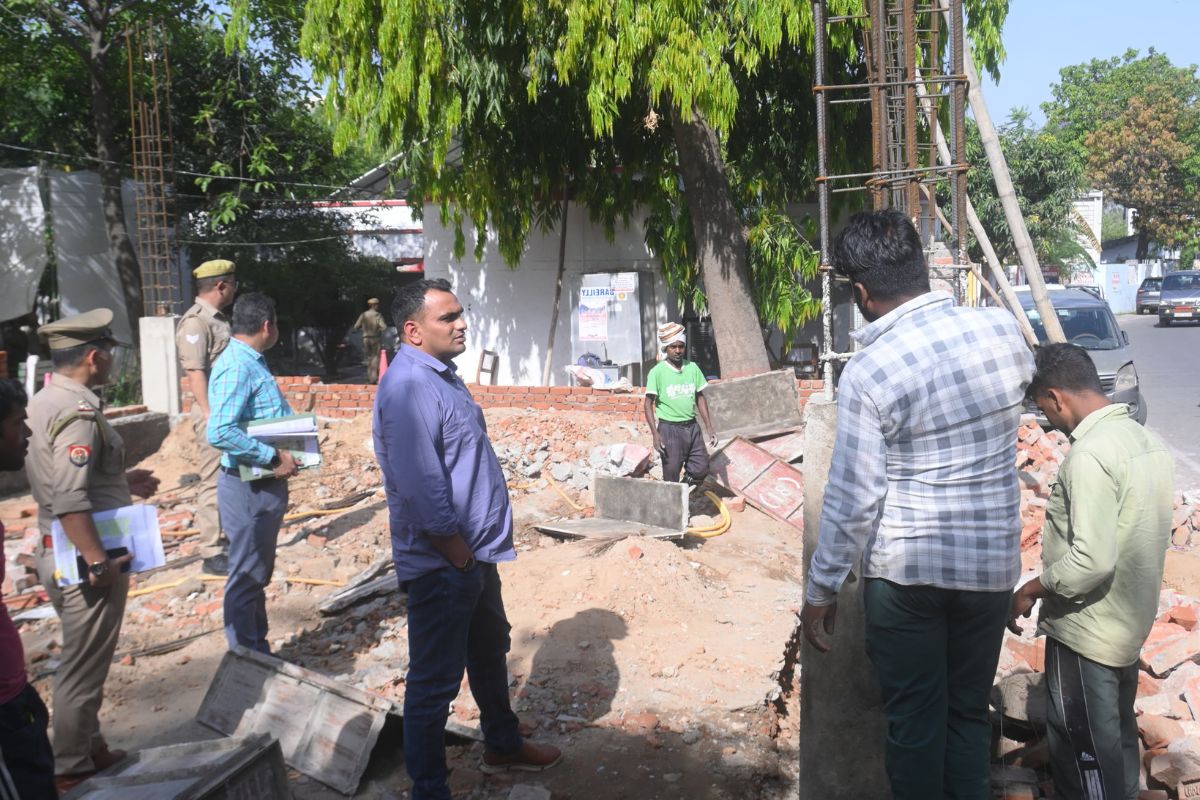 बरेली। एसएसपी अनुराग आर्य ने गुरुवार को अपने कार्यालय परिसर में चल रहे निर्माण कार्य की अचानक समीक्षा के दौरान घटिया निर्माण सामग्री पाए जाने पर ठेकेदार को मौके पर बुलाकर जमकर फटकार लगाई और अधूरी बनी दीवार को तुड़वाने का आदेश दे दिया।
