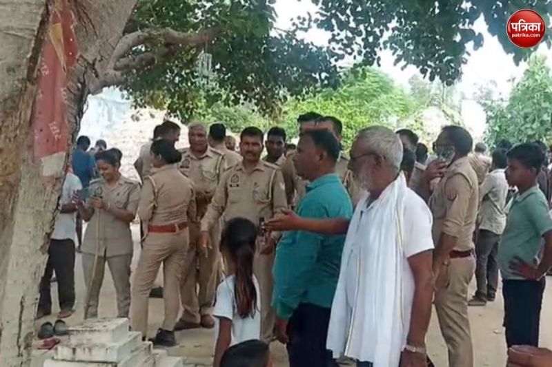 मौके पर मौजूद पुलिस और गांव के लोग (फोटो सोर्स: पत्रिका)