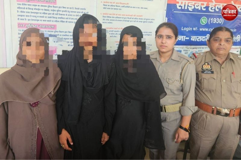 पुलिस के साथ तीनों किशोरियां (फोटो सोर्स: पत्रिका)