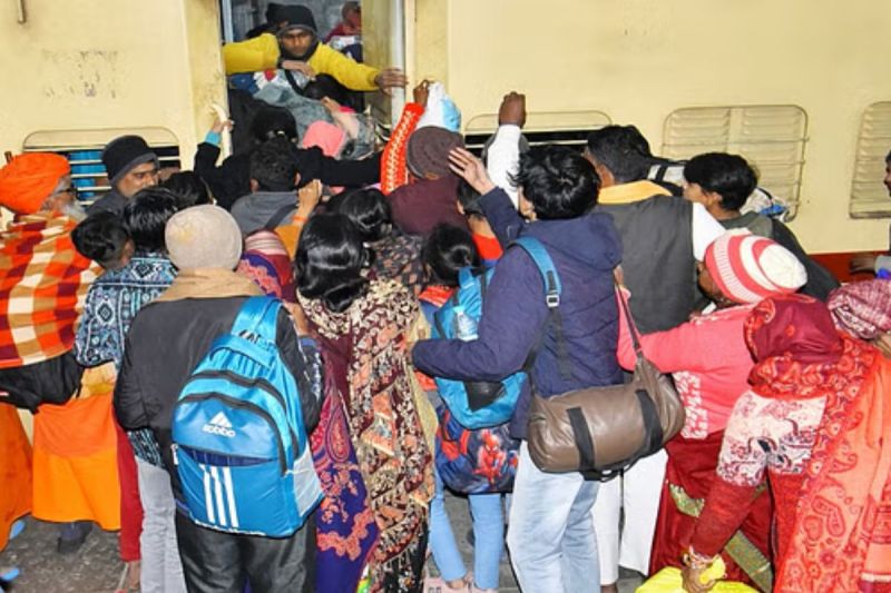 बरेली जंक्शन पर सोमवार, मंगलवार को प्रयागराज एक्सप्रेस में यात्रियों की भारी भीड़ देखी गई। प्लेटफॉर्म नंबर तीन पर यात्रियों की मारामारी की स्थिति थी। भीड़ इतनी अधिक थी कि दिव्यांग कोच में भी सामान्य यात्री बैठे दिखाई दिए। कुछ यात्री तो आपातकालीन खिड़कियों से कोच में घुसते हुए देखे गए, जबकि कुछ यात्री ट्रेन के दरवाजों के ऊपर बैठकर यात्रा कर रहे थे।