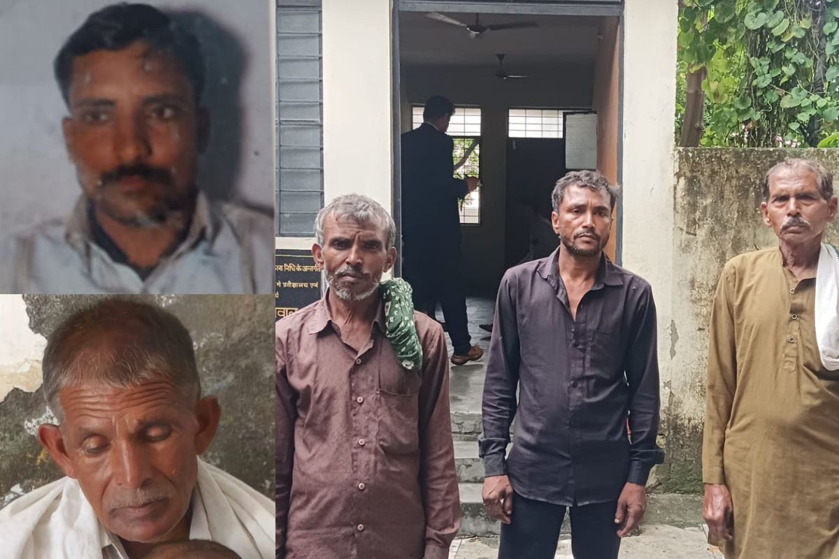 मृतक रामवीर और बुजुर्ग सूरजपाल व पोस्टमार्टम हाउस पर खड़े परिजन (फोटो सोर्स: पत्रिका)
