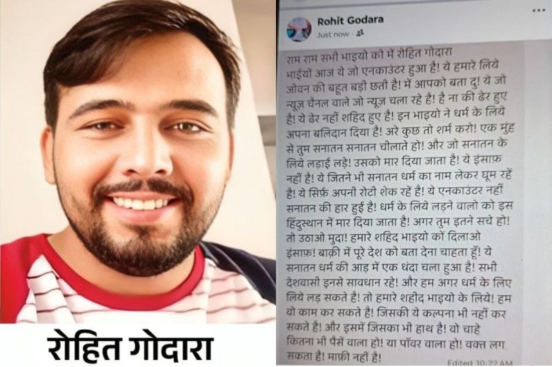 रोहित गोदारा और फेसबुक पर किया गया पोस्ट (फोटो सोर्स: पत्रिका)