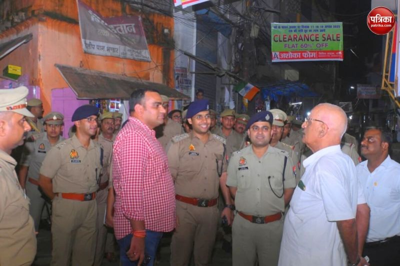 निरीक्षण के दौरान एसएसपी व अन्य पुलिस अफसर (फोटो सोर्स: पत्रिका)