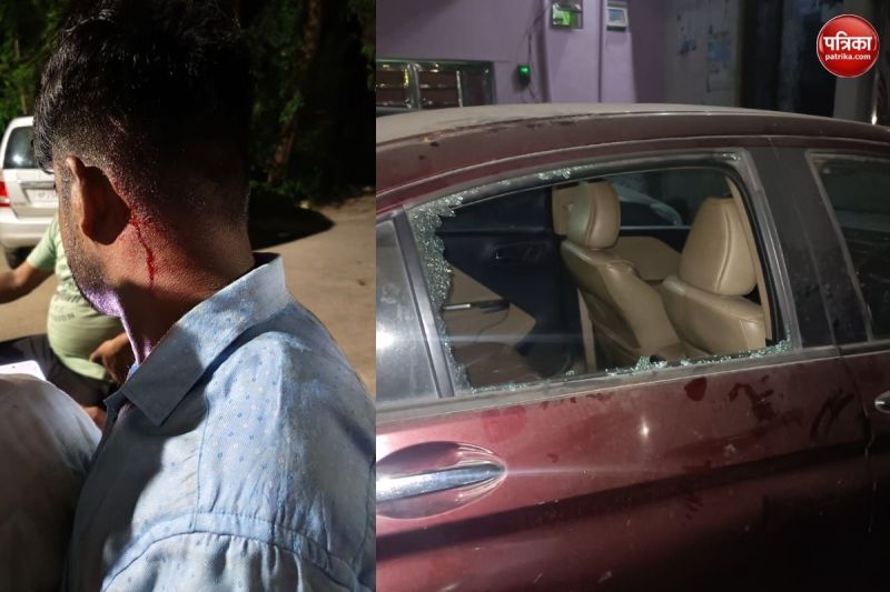 घायल युवक व कार का टूटा हुआ शीशा (फोटो सोर्स: पत्रिका)