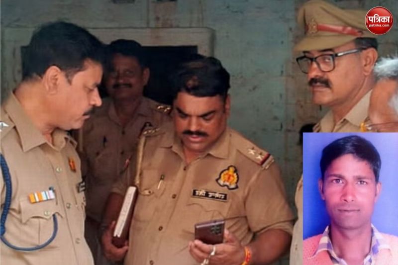 मौके पर मौजूद पुलिस और मृतक धर्मेंद्र का फाइल फोटो। (फोटो सोर्स: पत्रिका)