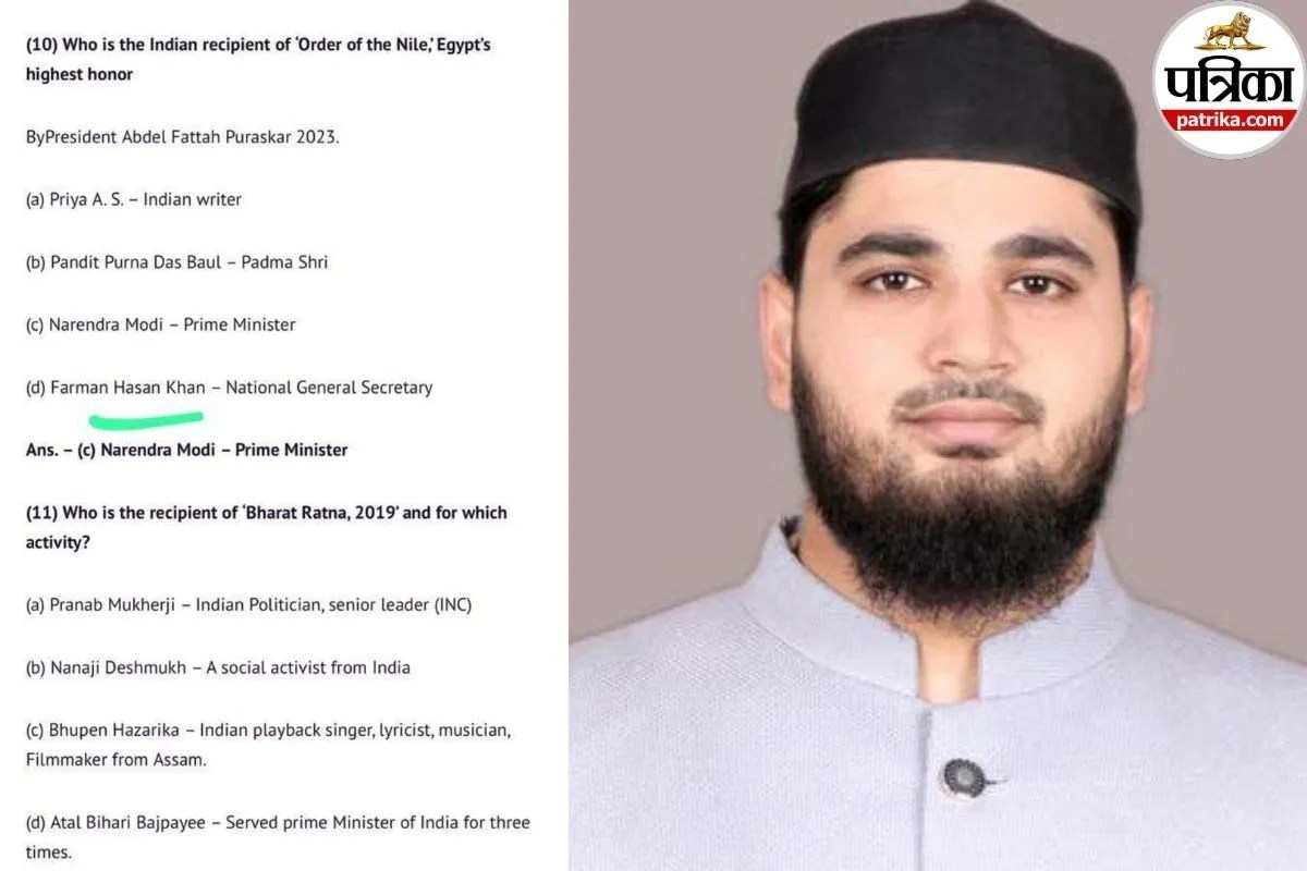 बरेली। बरेली की मिट्टी से निकली एक पहचान अब प्रतियोगी परीक्षाओं के सवालों में दर्ज हो गई है। जमात रज़ा-ए-मुस्तफ़ा के राष्ट्रीय महासचिव फरमान हसन खान उर्फ फरमान मियाँ का नाम UPSSSC और PCS जैसे बड़े एग्जाम के प्रश्न पत्रों में शामिल होते ही शहर में चर्चा तेज हो गई। इसे बरेली के लिए सम्मान और पहचान दोनों के तौर पर देखा जा रहा है।