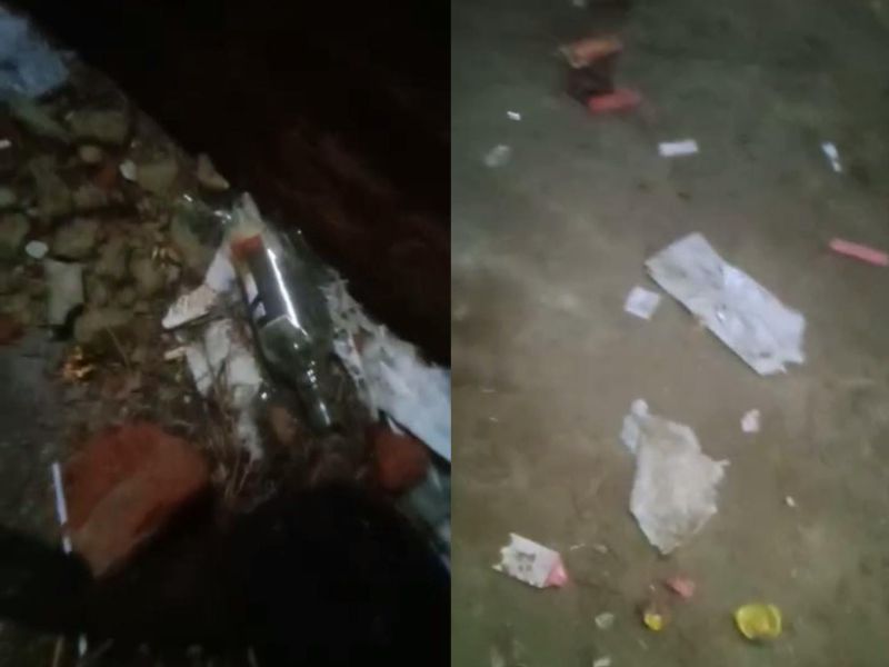 घटनास्थल पर मिली शराब की बोतले और कपड़े