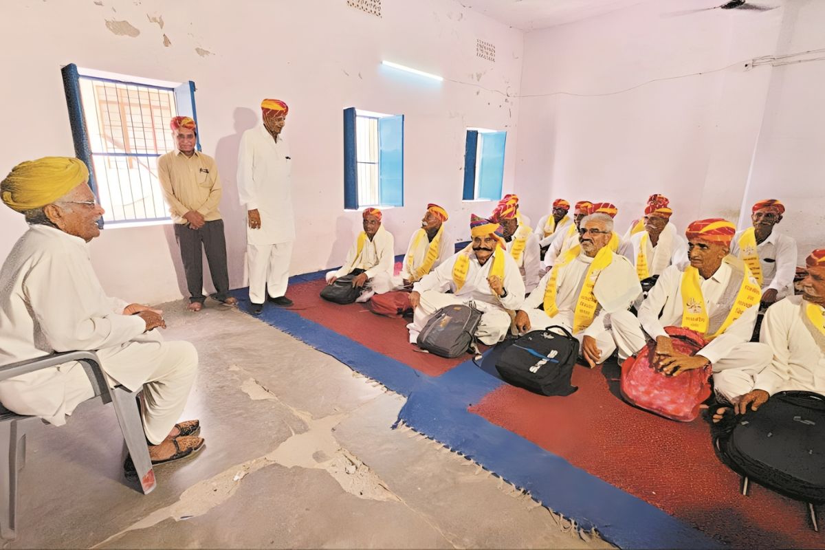 बाड़मेर। 65 से 68 साल के विद्यार्थी कक्षा में दरी पट्टी पर पालती मारकर बैठे और सामने उनके 85 से 90 की उम्र के वही शिक्षक जिन्होंने 1974-75 में यानि 50 साल पहले पढ़ाया था, पढ़ा रहे थे। बुजुर्गों की यह कक्षा जरूर थी लेकिन ये बुजुर्ग अपने बचपना को जी रहे थे।