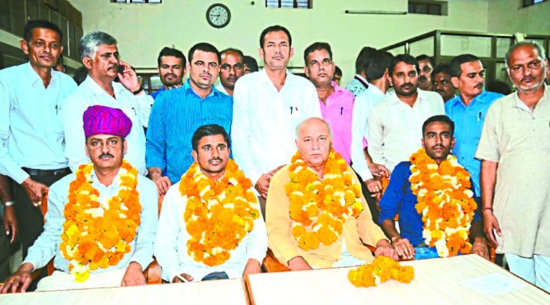 सहायक निर्वाचन अधिकारी सुरेश मोदी ने बताया कि अध्यक्ष पद प्रत्याशी करनाराम चौधरी ने सोहनलाल दवे को 117 मतो से हराया। इसी तरह उपाध्यक्ष पद पर दलपतसिंह सिसोदिया ने समुन्द्रसिह को 12 वोट, सचिव पद पर ईश्वरसिंह राठौड़ ने गणपत गुप्ता को 07 वोट व कोषाध्यक्ष पद पर भीमाराम कुमावत ने हरीराम विश्नोई को 80 वोटों से हराकर जीत हासिल की। चुनाव निर्वाचन अधिकारी महेन्द्रकुमार रामावत के निर्देशन में सम्पन्न हुए। चुनाव में कुल 301 में से 297 मत पड़े।