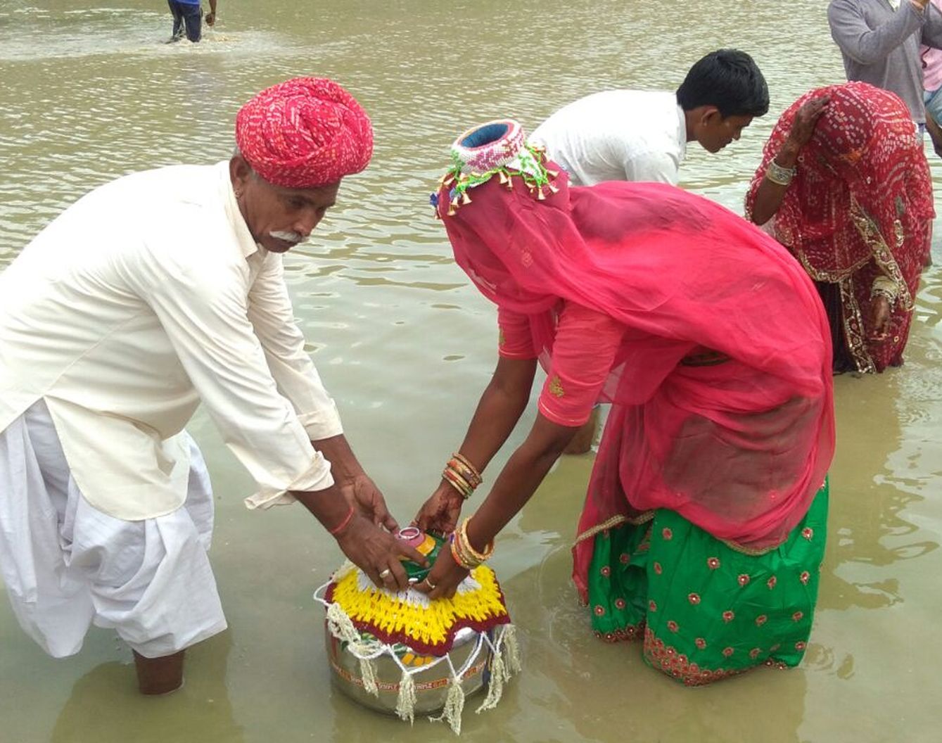 मोकलसर. स्थानीय रमना नाड़ी पर समंदर हिलोरने का कार्यक्रम हुआ। बहनों ने संमदर हिलोरा। भाइयों ने इन्हें पानी पिलाकर उपहार भेंट किए। महिलाओं ने मंगल गीत गाए।
